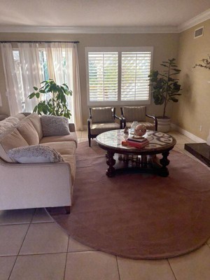 [This review was collected as part of a promotion.] Will have to say color seems rosy online but in real life it’s more of a mauve, I don’t mind that at all. Unique shape is exactly what I was looking for . I order the 9x12 for the area in the living room. Will say that it did shed a bit to much when I ran the shark vacuum for the first time but seemed ok, not sure if that normal for a brand new rug