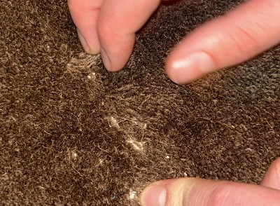 Hard plastic exposed on rug