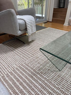 (This review was collected as part of a promotion.) This rug is beautiful, I ordered “taupe” because I wanted something with cool toned browns. The pattern is beautiful, not too busy. The feel underfoot is soft and luxe, not as itchy as jute or other wool rugs. The colour is the perfect mix of warm and cool tones, it’s more brown than beige. There was a bit of a mildew smell when we first unwrapped it but I’m sure that has to do with it being real wool. Overall, amazing and I definitely recommend!