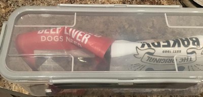 This container is the perfect size to pack food for our dog for our quick weekend getaways. The lid easily snaps on and off and it’s airtight seal locks in freshness, ensuring that our pet's food/treats stays fresh. It’s compact enough to throw in a bag and we don’t have to worry about the food spilling out. Super easy to clean and it’s dishwasher safe.