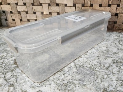 This is a nice quality bin. The unique shape makes it easier to fit on a shelf. My only complaint is it doesn't hold much. It says 80oz, and it is 5.5"W x 14.5"D x 4.5"H. Can definitely be used for more than just pet food. Nice lockable lids.