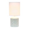Spruce up the lighting in your home with this fashionably designed 18.5" table lamp! A beautiful repeat pattern printed of gold squares on the base is paired effortlessly with a clean white fabric shade. With a variety of color and print options available, you are bound to find the right piece to add to your home.