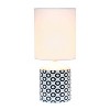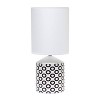 Spruce up the lighting in your home with this fashionably designed 18.5" table lamp! A beautiful repeat pattern printed of black ovals on the base is paired effortlessly with a clean white fabric shade. With a variety of color and print options available, you are bound to find the right piece to add to your home.