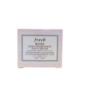 Fresh Rose Deep Hydration Face Cream, Deeply Hydrating Moisturizer for Soft, Supple Skin, 1.6 oz, delivers intense, time-release moisture to keep skin supple and smooth for 72 hours. Enriched with rosewater, rose flower oil, and hyaluronic acid, it deeply nourishes while enhancing radiance and softness. Perfect for all skin types needing long-lasting hydration and a fresh, dewy finish.
