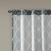 The Madison Park Saratoga Fret Print Panel is the perfect addition for a casual and stylish update to your home decor. This window panel features a trendy light beige fretwork on a soft blue ground, creating a simple yet modern look. The cotton blend basket weave fabric softly filters the perfect amount of sunlight into your home, while providing texture for natural appeal. Gunmetal grommet top detail makes this panel easy to hang, open, and close throughout the day. Fits up to a 1.25" diameter rod. Pattern position may vary per panel due to random cutting of fabric.