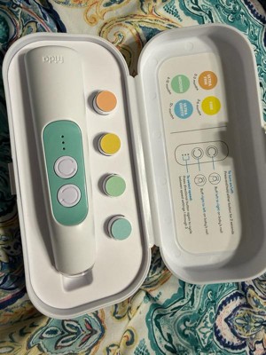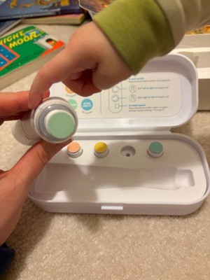 Scared of a snip slip? Nix your nail-care nerves and take total trimming control with the Electric Nail Buffer. It safely buffs and shapes tiny nails and cuticles, so you can keep up with your baby's non-stop nail growth. Easily change speed and direction as you go, and switch the grit as needed with four interchangeable buffer pads for newborn nails to coarser toddler claws. An always-on LED task light eliminates shadows for more focus and precision, day or night. Once you've nailed their mani/pedi, store everything in the secure case with your go-to pad in place, so you can grab and buff with one hand when the next snag strikes.