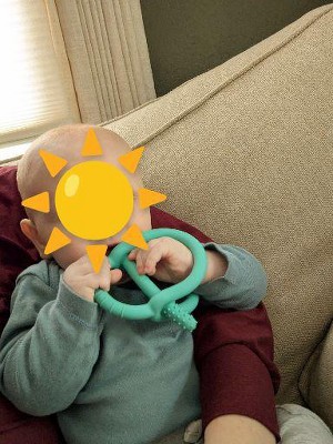 My 4mo old has started teething, but she's still struggling to master the concept of chewing on teethers rather than her hands. She also struggles to keep a grip on things. This thing is AWESOME. She grabs on and does not let go. It's definitely helped soothe some of the teething pain. My only complaint is the material it's made out of...it is a dog hair magnet and we have two blue heelers...iykyk. I wish it was a softer/smoother silicone so dog hair didn't sick as easily, but it's easy to rinse.
