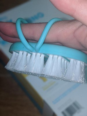 - FINGER BRUSH: Double-sided finger brush gets top and bottom gums at once, and protects grown-up fingers when baby chomps down