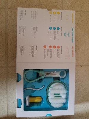 [This review was collected as part of a promotion.] This kit is so great for those with a new baby. It has all of the little grooming things you really don't think about as a new mom, and usually those things can add up quickly. This little kit has it all, a brush, comb, nail scissors, and a toothbrush; everything you need to keep baby looking good! The products are a great quality, and the brand is well known and i have several of their other products as well and they are all wonderful. The scissors cut nails smoothly and are very easy to use, even with a squirming baby. The brush and comb work as expected, as does the nice little toothbrush for babe. This would make a great baby shower gift for a new momma, or a good set to have on hand with both babies and toddlers. I'd definitely recommend it!