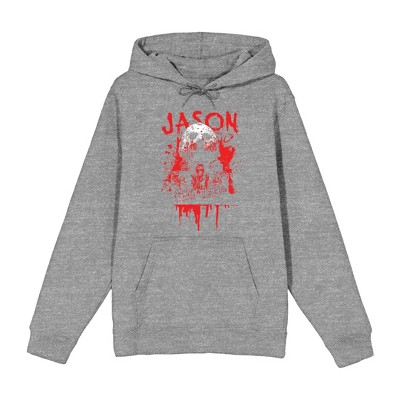 Friday The 13th Blood Splatter Jason Mask Long Sleeve Adult Hooded Sweatshirt - 1 of 3