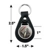 - QUALITY MATERIAL: Our durable round keychain is crafted from leather with a glossy resin-topped emblem featured design shown on one side. Approximately 1.5" (3.8cm) x 2.5" (6.4cm) in overall size, emblem is 1" (2.5cm)..