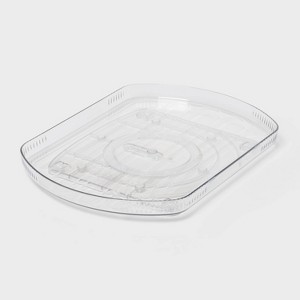 Streamline your fridge storage with this Fridge Rectangular Lazy Susan Turntable Organizer from Brightroom™. Made from BPA-free plastic, this freezer-safe organizer features a clear rectangular tray that rotates smoothly for convenient access to condiments, bottles, and jars. The four suction cups on the base provide secure placement, while the see-through design eliminates the need to dig through items to reach what you need.