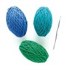 • 100% wool yarn balls in blue, teal, and green, approximately 2 oz each