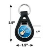 - QUALITY MATERIAL: Our durable round keychain is crafted from leather with a glossy resin-topped emblem featured design shown on one side. Approximately 1.5" (3.8cm) x 2.5" (6.4cm) in overall size, emblem is 1" (2.5cm)..