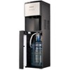 We love that this water cooler is loaded from the bottom. Makes switching out water jugs very easy. The look is great and does a great job keeping water cold. Highly recommend!!