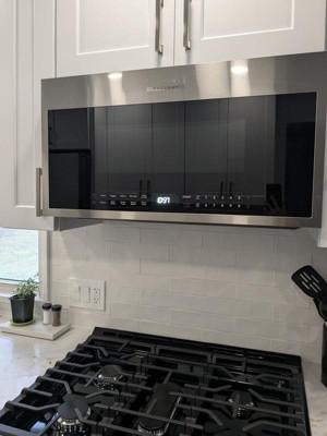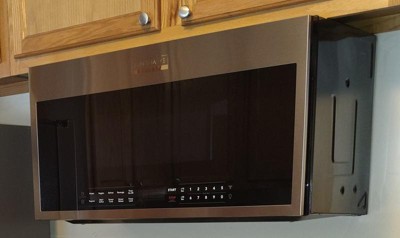 [This review was collected as part of a promotion.] Great upgrade from the prior Frigidaire microwave. From a 1.7 Cu. to 1.9 Cu.; plus a modern look and features. Installation only took ~ 15 minutes; the installers were able to use the original back mounting plate and only drilled two holes for the top screws. The only feature I wish it would have is a dimmer for the LED clock: It's a bite bright. There is an option to turn off, however, I like having a clock display. So far I'm pleased with this microwave.