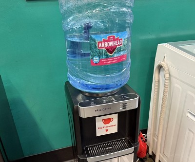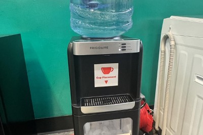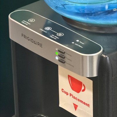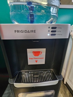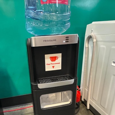 Stylish Frigidaire water and ice dispenser. The ice is a little noisy as it drops into the tray and it’s a little low to the ground. Would be nice for a small office.