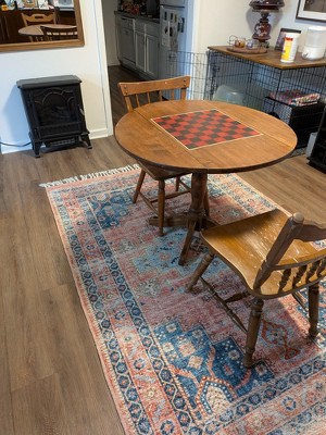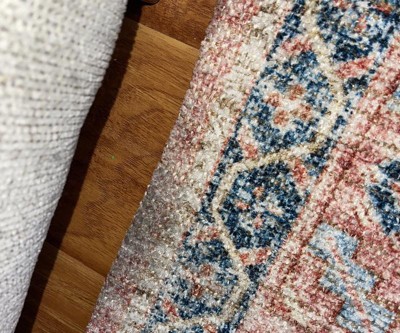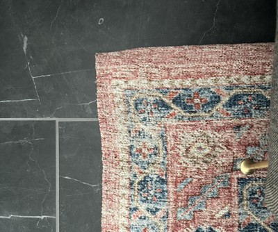 A: Hey Nesie1970shopalot - Thank you for your interest in this rug. Great choice! This rug features a medallion pattern in a distressed finish with fringed edges for a charming look, making it a perfect addition to your indoor space. The woven material with cotton backing provides soft comfort underfoot, while the flat-pile construction makes it ideal for high-traffic areas. Hope this helps! - Josh