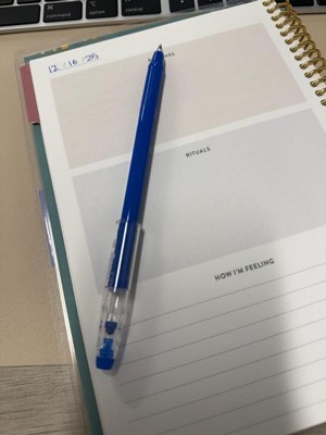[This review was collected as part of a promotion.] I really enjoy the erasability feature of these, especially since I love writing in pen. The only issue I have with them is they aren’t super pigmented. They do erase very well though!
