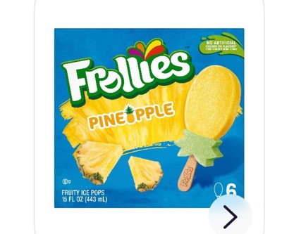 - FRUITY FLAVOR FRUITY FUN: At Frollies, we love creating fun and fruity frozen treats. Our 6 pack of frozen pineapple ice pops are bursting with fruity flavors that are super tasty and melt-in-your-mouth good