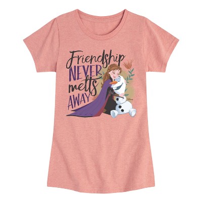 Disney Frozen 2 - Friendship Never Melts Away - Toddler & Youth Short Sleeve Graphic T-Shirt - Step into the unknown with Frozen 2 graphic apparel. Featuring Elsa, Anna, and their new adventures, these designs bring the epic journey to life with magical, frosty designs.