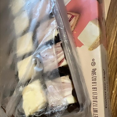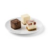 - Features New York-style, chocolate and strawberry swirl cheesecake pieces