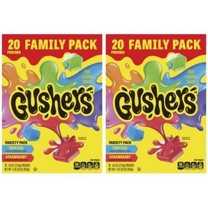 - INCLUDES two boxes of Gushers Fruit Snacks Strawberry/Tropical 20ct