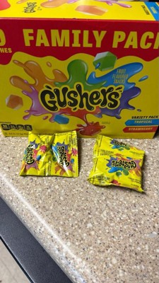 [This review was collected as part of a promotion.] These Gushers were a HUGE hit in our house. So much of a hit that we are purchasing the 3rd box of this same flavor combo since we first tried them. My kids love the flavors and the bursting, liquidy centers. I love that they are easy to pack for anything from a picnic or school lunch to a day at the ball field.