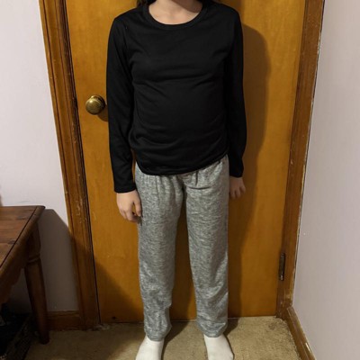 [This review was collected as part of a promotion.] This is the fruit of the loom boys pajama set. It has a thin black long sleeve top and grey fleece pants. My son loves this set! He is a huge fleece pajama pants fan and this definitely lives up to his expectations! The top is thin and comfortable. It allows air movement at night and doesn't make him too hot. The pants have an elastic waist band. He is in a medium or size 8. It is true to size! I received an incentive to write this review.