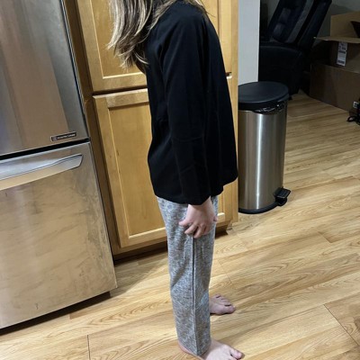 [This review was collected as part of a promotion.] I bought these for my daughter, and she is instantly obsessed with the feel of the pants. The pants are super plush and soft. They also have little pockets on the side. With an elastic waist band. The shirt is a basic, thin, cotton, black, I am a bit disappointed. It is not the same material as the top but it is fine. We have ordered my daughter‘s shoe size which is typically a size 10 and this is a 10 or 12 and it fits fine. I would say if you’re in between size is definitely size up. I received an incentive to write this review.