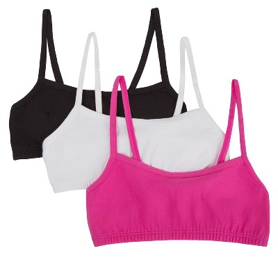 Keep her moving in the Fruit of the Loom Girls Cotton Stretch Sports Bras! A great everyday bra, the classic cut and stretchy fabric will keep her supported without restricting her. Give the girl in your life a good start with Fruit of the Loom. Designed to provide support while giving her room to grow, tried and true Fruit of the Loom bras are the perfect choice for your growing girl.