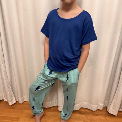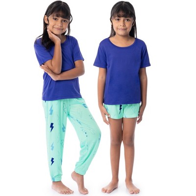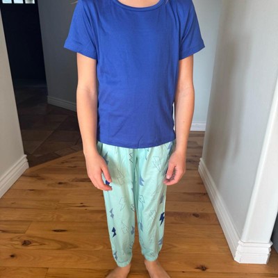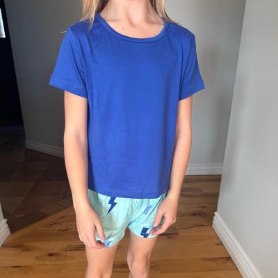 [This review was collected as part of a promotion.] I purchased these girl's pajamas online for my daughter. This 3 piece pajama set includes a pair of long pants, a pair of shorts, and a short sleeve tee shirt. The tee shirt is a prettt royal blue color. The shorts and pants have a cute and stylish lightening bolt pattern on them. These fit my daughter well and she said they are comfortable. She likes the versatility of being able to choose shorts or pants to wear. She is wearing a size xl (14/16) which is her usual size. She is 5'2" and has a 32" chest. For the price, this set is a pretty good value. The pajamas are a little on the thin side, so I do think these are better suited for summer than for winter.