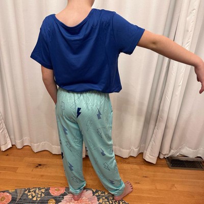 [This review was collected as part of a promotion.] This is a soft and comfortable 3 piece pajama set in blue and teal with lightning bolts that your pre-teen or tween will find easy to love. It’s great to have the option of shorts or pants to pair with the boat neck top. This is a size XL, which is a 14 to 16. My daughter normally wears a 12 to 14, and this was a little large on her, particularly in the waist but it still fit.