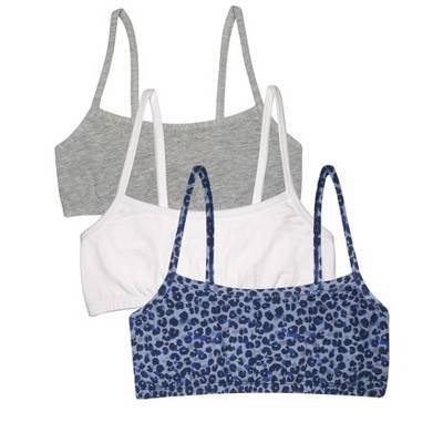 Watch her shine in the Fruit of the Loom Big Girls' Cotton Training Bra From sports leagues to dance and gymnastics, these girls sports bras will be there to support her through every motion. The training sports bras are made of soft, stretch cotton fabric in an easy, pullover style. These tween sports bras for girls have a wide elastic bottom band and wider straps that gives her a snug fit to lay underneath clothing. Two ply, soft cotton fabric for modesty. These girls sports bras feature a scoop front and back. We know your future fashionista wants to dress herself. Fruit of the Loom Girl's sports bra for girls comes in all of the assorted solid colors & adorable prints so she can pick a fresh look all her own. Girls training bras 8-10, bra for girls 10-12, girls sports bra 12-14. Give the girl in your life a good start with Fruit of the Loom. Designed to give her support while giving her room to grow, tried and true Fruit of the Loom underclothes are the perfect choice for your growing girl.