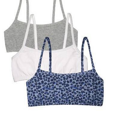 Watch her shine in the Fruit of the Loom Big Girls' Cotton Training Bra From sports leagues to dance and gymnastics, these girls sports bras will be there to support her through every motion. The training sports bras are made of soft, stretch cotton fabric in an easy, pullover style. These tween sports bras for girls have a wide elastic bottom band and wider straps that gives her a snug fit to lay underneath clothing. Two ply, soft cotton fabric for modesty. These girls sports bras feature a scoop front and back. We know your future fashionista wants to dress herself. Fruit of the Loom Girl's sports bra for girls comes in all of the assorted solid colors & adorable prints so she can pick a fresh look all her own. Girls training bras 8-10, bra for girls 10-12, girls sports bra 12-14. Give the girl in your life a good start with Fruit of the Loom. Designed to give her support while giving her room to grow, tried and true Fruit of the Loom underclothes are the perfect choice for your growing girl.