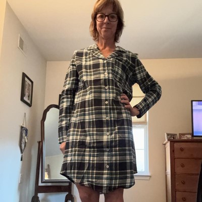 [This review was collected as part of a promotion.] I love this plaid nightshirt it is so comfortable and cozy to wear. The colors are great and it’s perfect for the colder weather. I am wearing a size Medium and I am 5ft 6 tall and I normally wear a size 8. This nightshirt fits me just right in the body and the sleeves. The buttons undo but it was easy to pop on over my head without undoing them. Super product and it would make a nice gift. I received an incentive to write this review.
