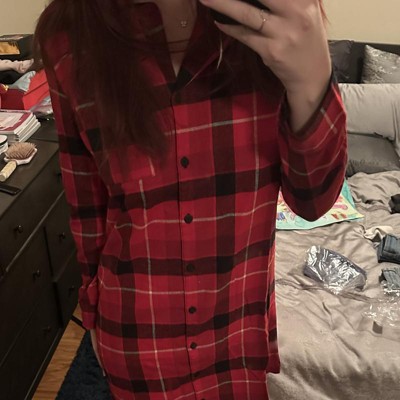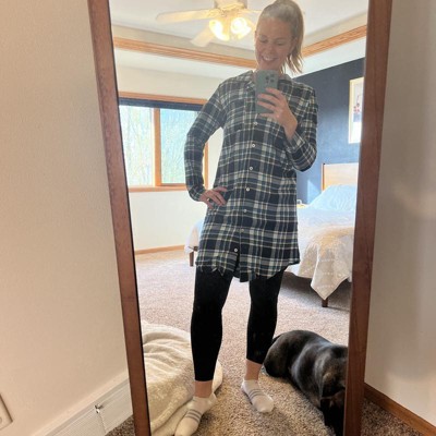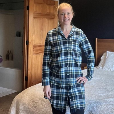 Cozy up in timeless comfort with this flannel sleepshirt. Designed with long sleeves, a full button-up front, and a classic notched collar, it blends traditional charm with everyday ease. The curved hem adds a flattering touch, while soft flannel fabric keeps you warm on chilly nights. Ideal for relaxed evenings and slow mornings, it’s your go-to for every cozy moment.