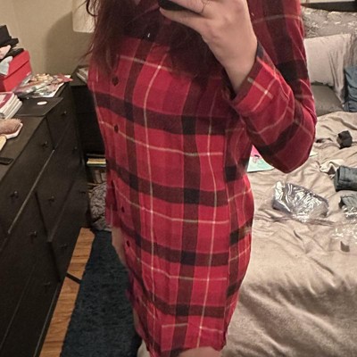 [This review was collected as part of a promotion.] I’m just loving this flannel sleepshirt. Wearing the size of XL and the fit is true to size. I love the buffalo plaid look in red and black. It’s so trendy in northern mn! This is soft, fits well around my curves, the length is perfect and it’s so warm. It doesn’t feel restrictive but it’s not super loose. I find it to be flattering. I like the buttons, the collar and the quality. I received an incentive to write this review.
