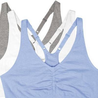 • The most comfortable bras youll own. The Fruit of the Loom Womens Shirred Front Racerback Sports Bra include 3 cotton pullover bras made for unbeatable all-day comfort.