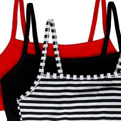 • A comfortable and lightweight alternative to an underwire bra, the Fruit of the Loom Women's Spaghetti Strap Cotton Sports Bra includes 3 pullover sports bras perfect for everyday wear or low impact workouts. Layer the bras for added support and a strappy look.
