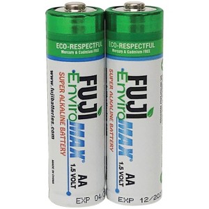 From Fuji comes environmentally respectful yet powerful batteries—the EnviroMax Super Alkaline Batteries! This 2 pack of AA batteries is designed for digital and high-drain devices and exceed industry standards with their 10-year shelf life. Nor are they packaged in non-recyclable PVC plastic. Instead, Fuji EnviroMAX batteries are made in some of the world’s most environmentally friendly battery plants, operating under some of the most strict standards of environmental responsibility. In fact, most of all resources used in the Fuji EnviroMAX manufacturing process are reused and recycled! Plus, independent tests show Fuji EnviroMAX batteries equal—and most often exceed—the performance and longevity of equivalent major brands._
