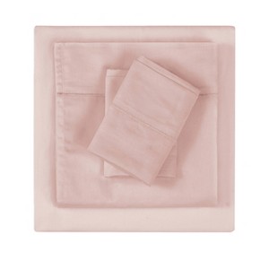 Enhance the idea of comfort with this 300 thread count cotton sateen sheet set. This fabric is made from long-fiber woven threads that create a silky, soft and smooth feel that will wear well over time. The fitted sheet's 15 inch pocket will fit any mattress up to 18 inches and the elastic edges will help to keep it in place. With a variety of colors offered and a sensational yet subtle sheen, this collection is guaranteed impress. Thread Count: 300, Piece 1: Flat Sheet: 96 Inches (L) x 69 Inches (W), Quantity 1, Care and Cleaning: Machine Wash & Tumble Dry, Piece 3: Pillow Case: 20 Inches (L) x 26 Inches (W), Quantity 1, Piece 2: Fitted Sheet: 75 Inches (L) x 39 Inches (W), Quantity 1, Includes: 1 Pillowcase, 1 Flat Sheet, 1 Fitted Sheet, Textile Material: 100% Cotton, Fabric Name: Sateen, Fits Maximum Mattress Depth: 18 Inches, Number of Pieces: 3