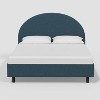 - Upholstered half-moon platform bed, designed for use without a box spring