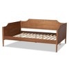 Create a cozy environment for lounging and sleeping with the Alya daybed. Made in Malaysia, this versatile piece combines the functions of sofa and bed into one. Its strong wood frame ensures durability, while its walnut brown finish adds warmth to any space. Inspired by farmhouse aesthetics, the daybed features cut-out panels enhanced with charming inset detailing. Tapered legs lend an elegant touch. Requiring assembly, the Alya daybed is the quintessential piece for a child’s room or guestroom.