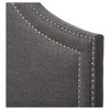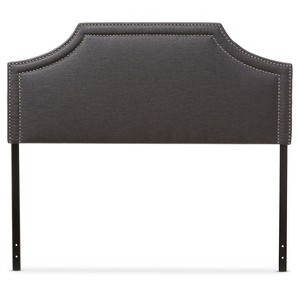 Featuring clean lines, subtle hues and a chic, laidback aesthetic, the Avignon headboard offers your bedroom interior simple, sleek elegance with a touch of trendy metallic. The cut-out corners channels the elegance of an iconic style icon with the Avignon Modern and Contemporary Upholstered headboard. For those seeking to add a touch of luxury to their bedroom, the Avignon headboard will almost instantly glam up any space with its double silver nail heads trims, creating that Hollywood glamour you have been dreaming of. Constructed of solid rubberwood frame and plywood, the headboard is built to last. Soft polyester fabric in dark gray tone over the foam filled headboard provides ample comfort for you to lean against. Leg supports are invisible once set up and can be adjusted to suit the height of your ensemble for convenience. Headboard sits between the wall and the ensemble frame, attaching not to the bed base but to the legs, for stability. Made in Malaysia, this full size headboard requires assembly.