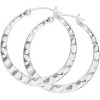 These hammered silver hoop earrings are ideal for adding textured simplicity to your collection. Crafted in sterling silver, a minimal hammered design is seen throughout these flat, tapered hoops. Classic, yet sophisticated, this pair of hoop earrings are a must-have for any jewelry box. The pieces come with ".925" sterling silver quality stamps as symbols of guaranteed product quality.