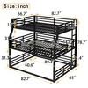 - Space-Maximizing Triple Bunk Design for Compact Spaces This metal triple bunk bed optimizes vertical space with three stacked sleeping areas, freeing up valuable floor space in shared kids' rooms, guest spaces, or vacation homes. Its vertical layout eliminates the need for multiple separate beds, making it a smart solution for families or spaces with limited square footage.