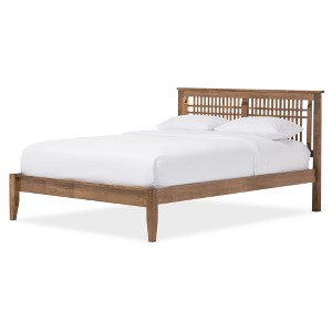 Loafey Mid-Century Modern Solid Wood Window-Pane Style Platform Bed - Baxton Studio