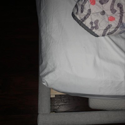 We ordered two twin size greyish beige beds for our teen boys who had broken their previous bed frames. I was crossing my fingers these beds would be very sturdy and they are! They are beautiful too. The greyish beige color really is a greyish beige. Up close there is almost a mauve color thread running through it that must give it the touch of warmth. So if you are looking for a super cool light grey this may be too warm but for us it worked great. Their room is painted a dark moody grey and they have light gray comforters. The instructions were lacking but my husband (who is very experienced at putting boxed furniture together) didn't have any problems.