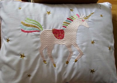 [This review was collected as part of a promotion.] My 9 year old absolutely loves this comforter set. It comes with a comforter, sheet set, decorative unicorn pillow and shams. The unicorn sheet set are a perfect match. The sham has a light pink back. She loves how soft this set is. Care is a little specific, washing in cold and using air dry or low temp in the dryer. Overall this is a beautiful bed set.